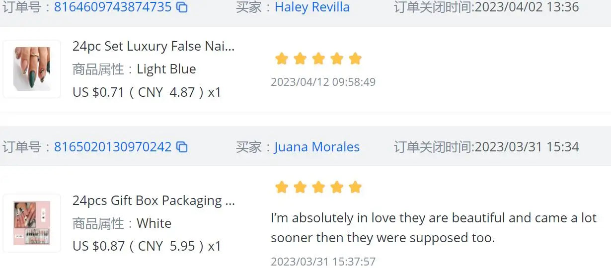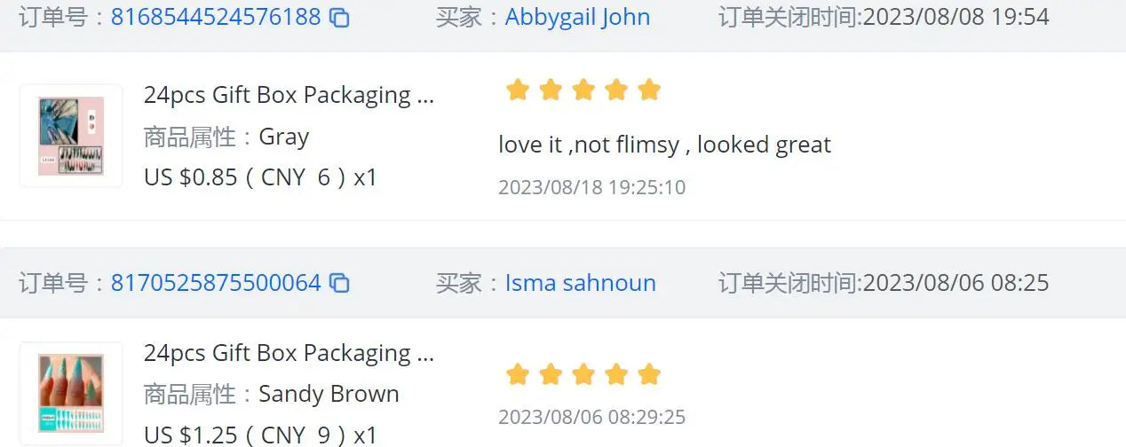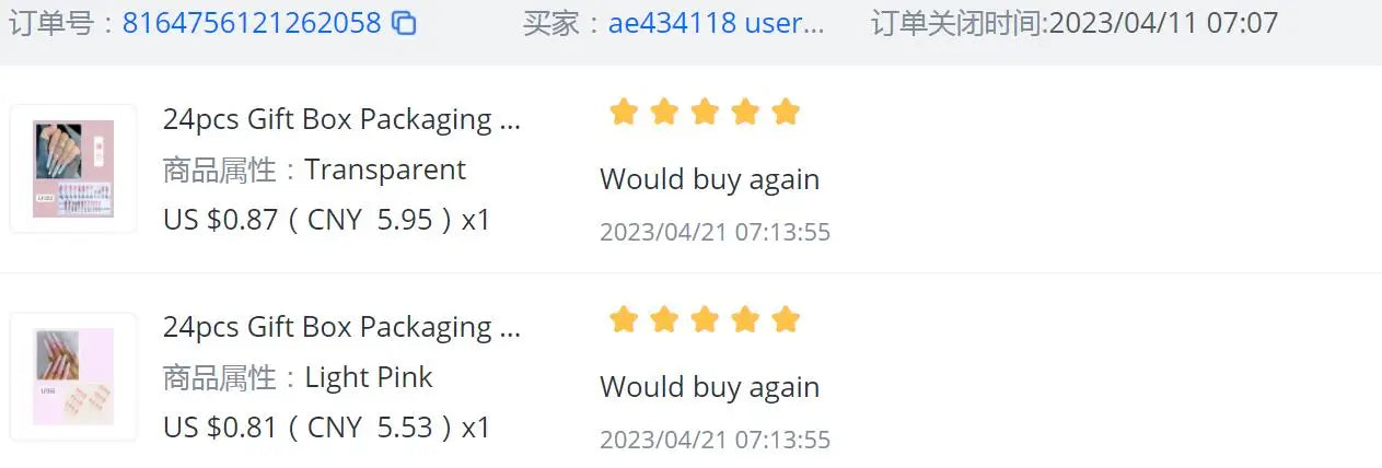 【Package Box】Package:24 Nails/box, Jelly glue sticker+Nails strip file+Alcohol swabs+wooden stickin each box