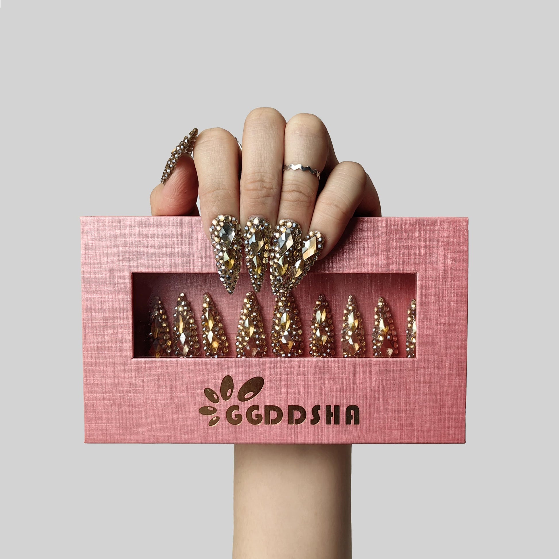 Full Diamond Medium Almond Press On Nails Acrylic Handmade Nails Full Deluxe 3DCrystal